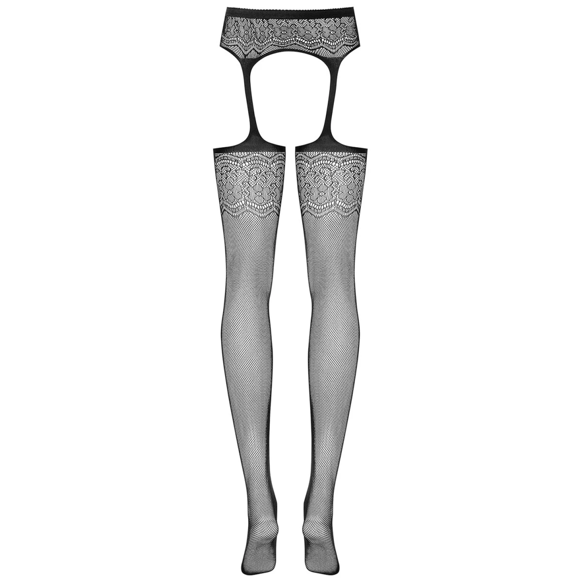 Geef een erotische draai aan elke outfit met deze netkousen met jarretels van Obsessive. De set combineert de jarretelgordel en kousen in één stuk en maakt je benen het middelpunt van de belangstelling in verleidelijk visnetmateriaal.