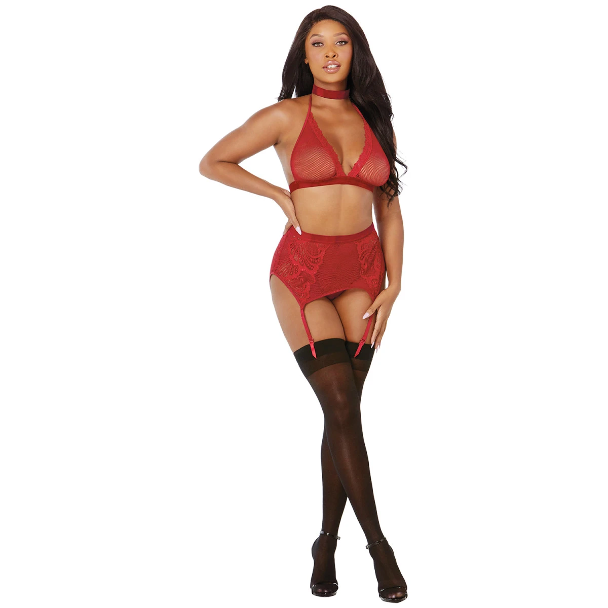 Trek deze 4-delige Set van Kant aan van Dreamgirl en je partner zal elk woord gehoorzamen dat je zegt, want je zult onmogelijk te weerstaan zijn in deze prachtige set van rood visnet en kant.