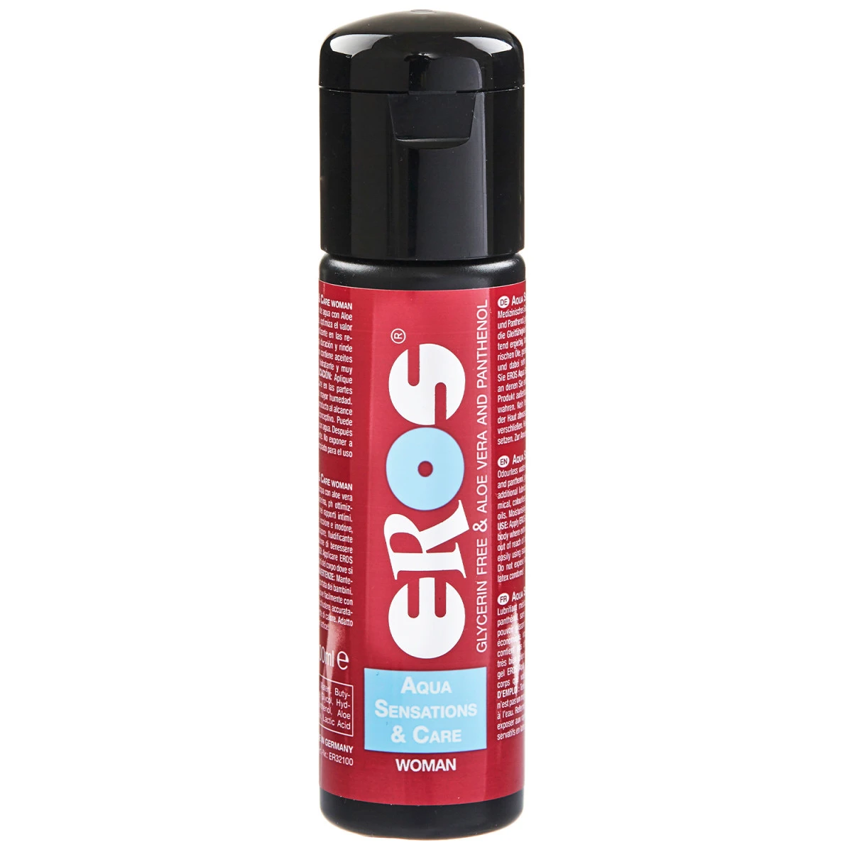 Eros Woman Aqua glijmiddel bevat aloë vera en panthenol, bekend om hun hydraterende, beschermende en herstellende werking, en dus een prima keuze als je een glijmiddel met extra verzorging wil.