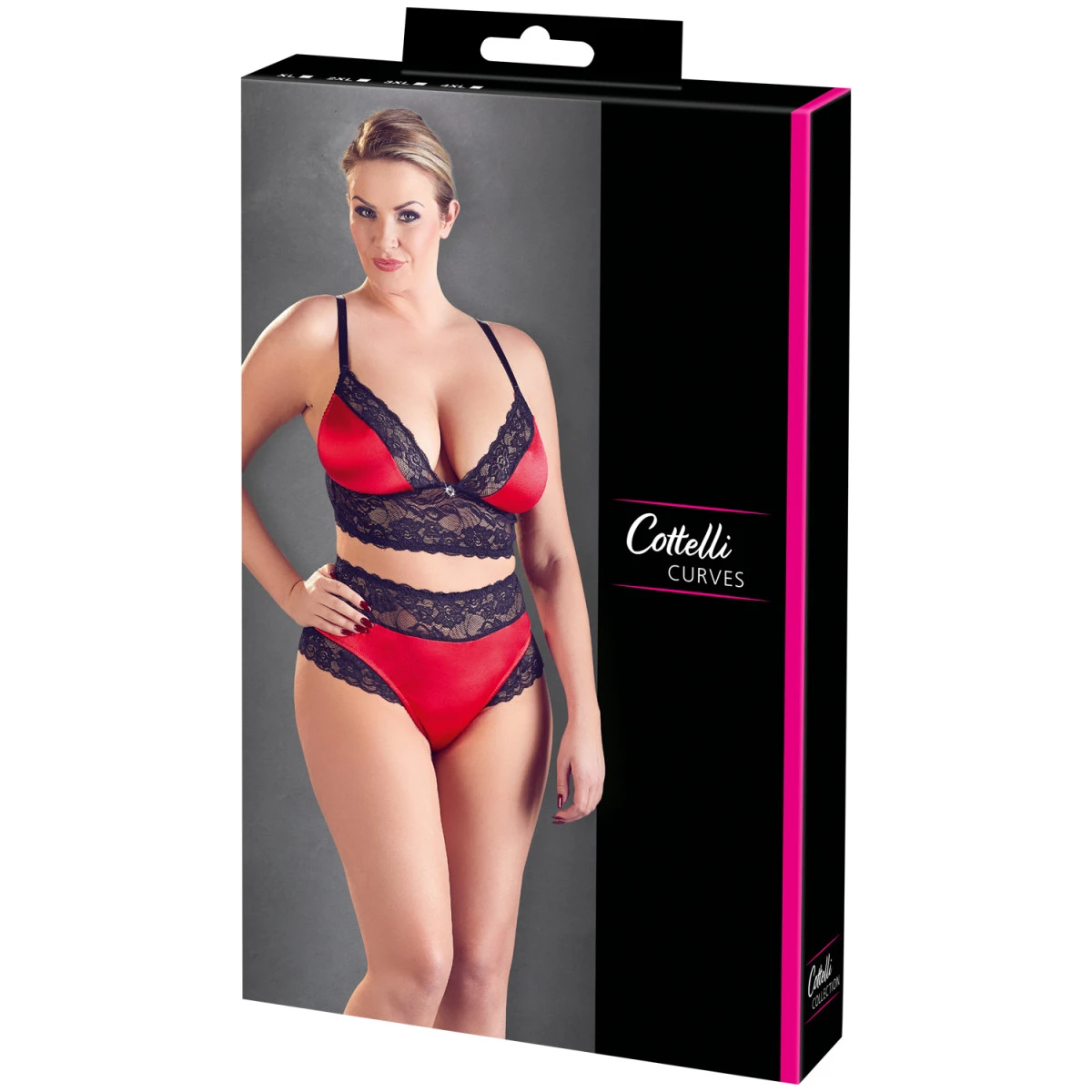 Deze must-have set van Cottelli is gemaakt van een verleidelijk rood satijn, contrasterend met een prachtig gebloemd kant. Het geeft je een sensueel en aantrekkelijk gevoel als nooit tevoren.