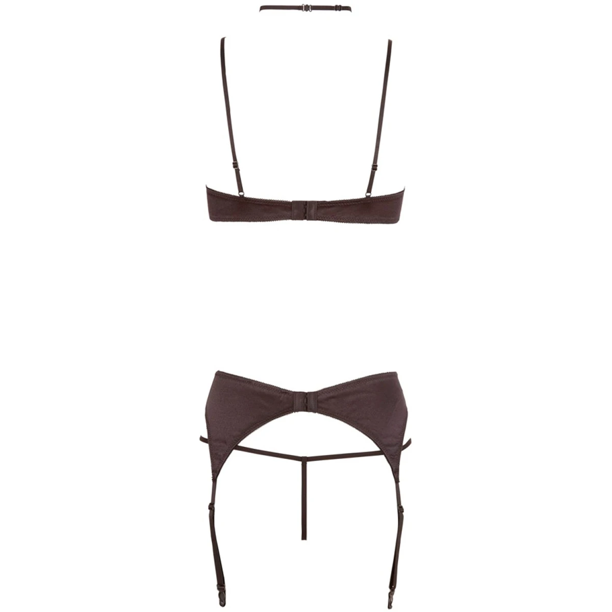 De set wordt geleverd met een bijpassende jarretelgordel die je taille echt benadrukt. Bevestig eenvoudig je favoriete kousen en geniet van je kinky en erotische looks.
