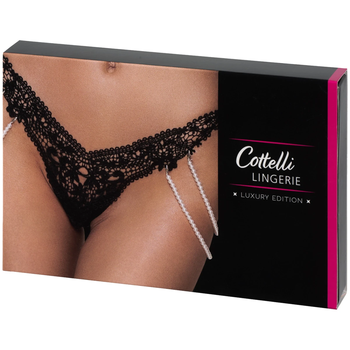 Laat je heupen zwieren met betoverende charme, als je deze Cottelli string draagt. Twee afneembare parelsnoeren vallen om je heupen en versieren en accentueren je mooie billen.