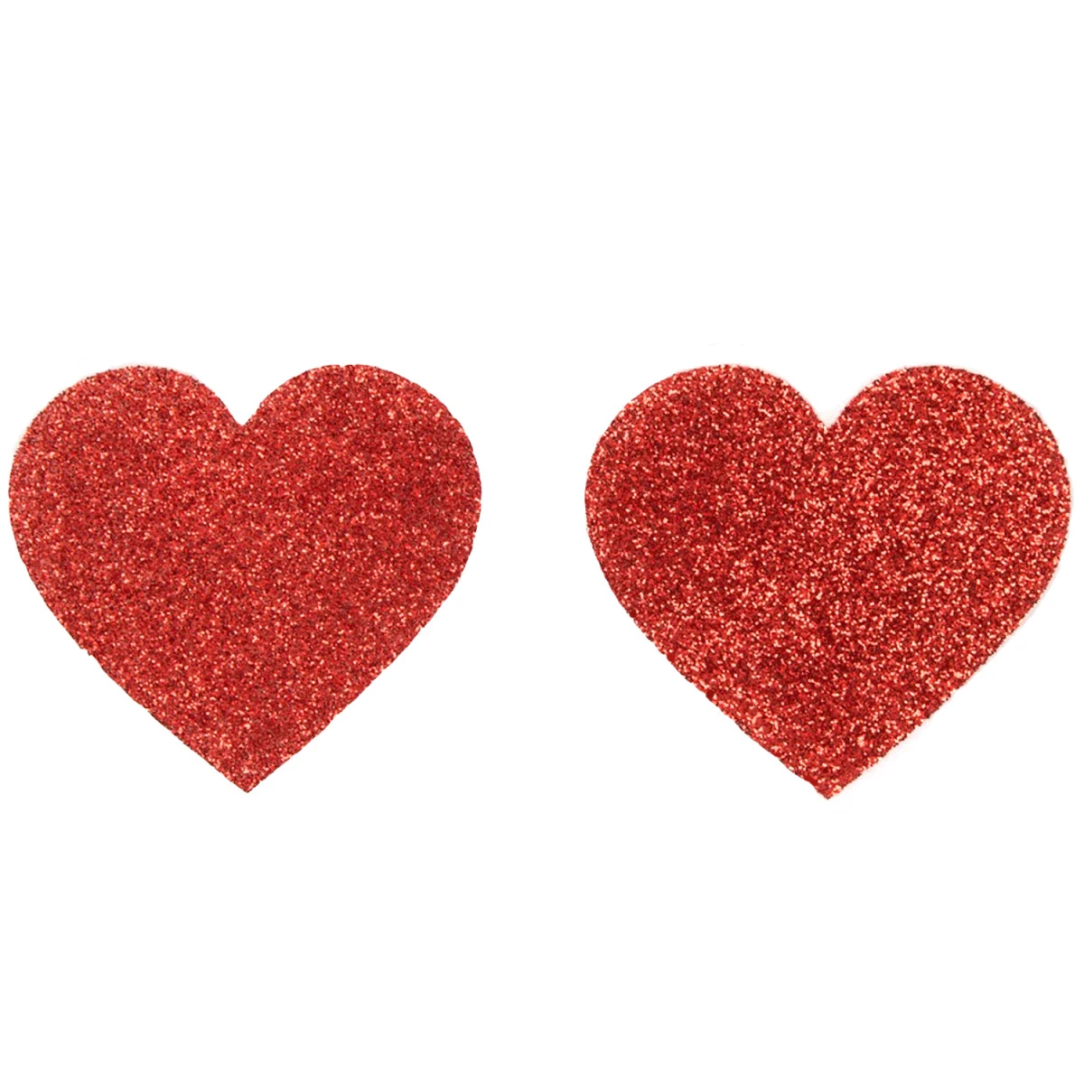 De zelfklevende rode en glinsterende hartjes zijn makkelijk aan te brengen op je tepels en zullen je zeker in de spotlights zetten.