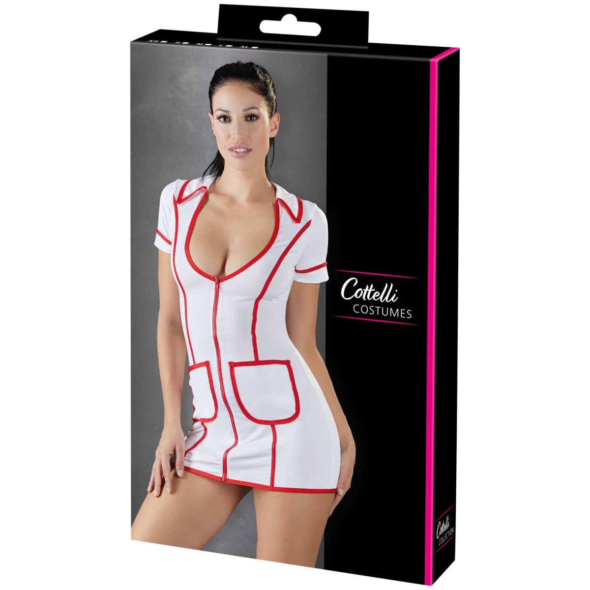 Wees zelf de oorzaak en de remedie in één in deze verpleegsterjurk van Cottelli. Genees een pijnlijk hart met wat ondeugende TLC of neig naar een zere plek die wat stimulatie nodig heeft. Er is niets dat je niet kunt genezen in deze nauwsluitende, witte jurk met rode voering en een verrukkelijke laag uitgesneden hals.