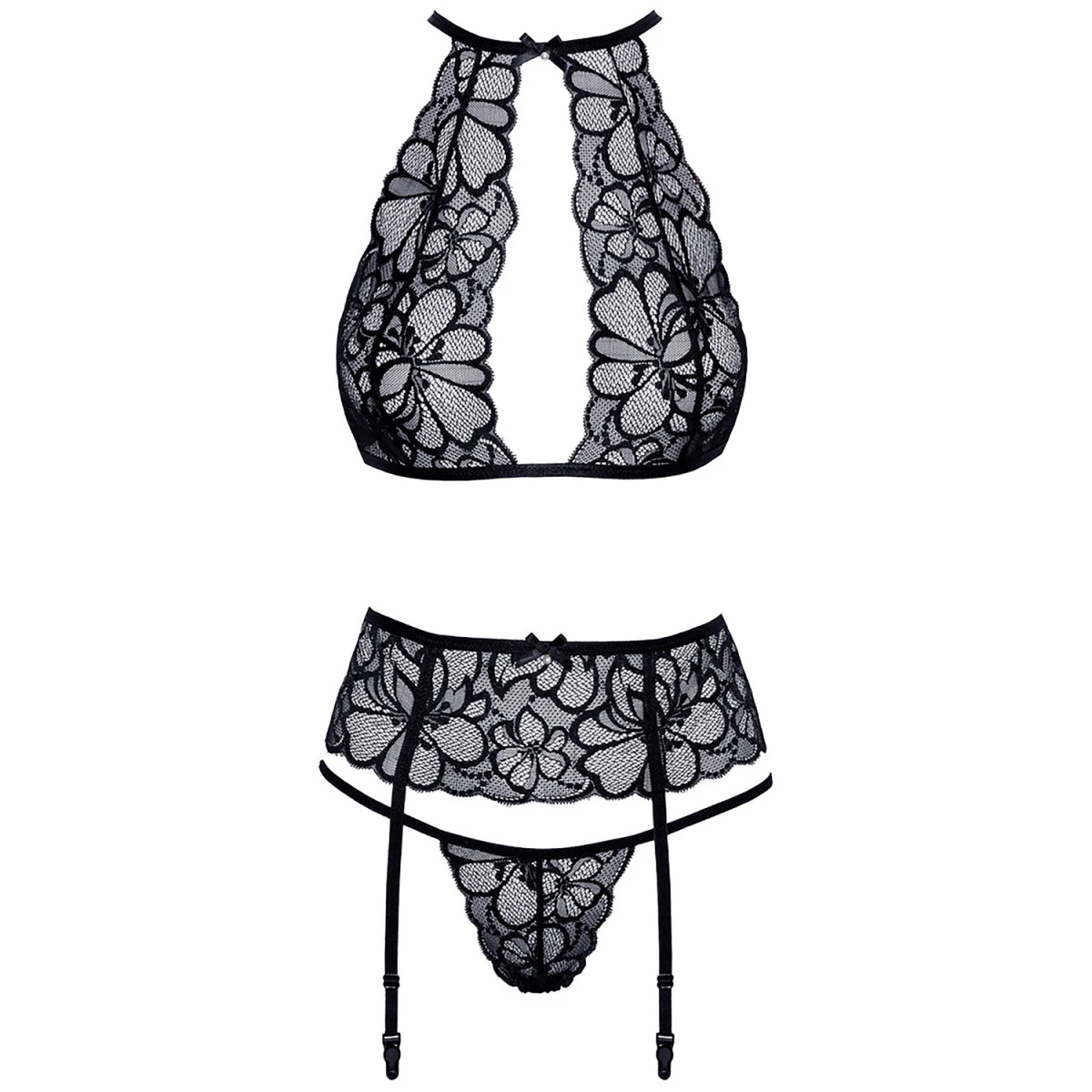 Voel de temperatuur stijgen als je de kanten lingerie set van kissable draagt. De halternek bh wordt geleverd met een string en jarretelgordel, zodat je voorbereid op een nacht vol opzwepende verleiding bent.