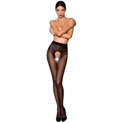 De zwarte panty met open kruis van Passion is jouw trouwe bondgenoot, zelfs bij het wisselen van dag- naar avondkleding, of tijdens ondeugende nachtelijke escapades.