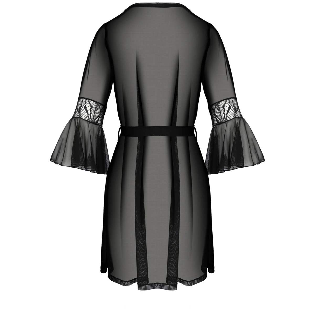 De onderste helft en achterkant zijn volledig gemaakt van transparant mesh, dat je partner zegent met uitzicht op je prachtige achterkant. Combineer met je favoriete lingeriesetje voor een sexy avond, of presenteer jezelf naakt met de kimono losjes over je silhouet gedrapeerd.
