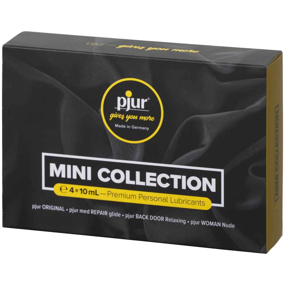 Deze Pjur mini-collectie van glijmiddelen voorziet in alle behoeften en bevat het Original glijmiddel op siliconenbasis, het Med Repair Glide glijmiddel op waterbasis, het Backdoor Relaxing Anal glide glijmiddel op siliconenbasis en het Woman Nude glijmiddel op waterbasis.