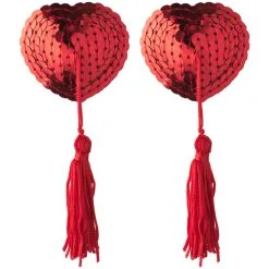 De rode, glinsterende hartvormen zullen ongetwijfeld een serieuze glans toevoegen aan je verjaardagskostuum of je kunt ze onder je avondkleding dragen voor een flitsende verrassing als je je uitkleedt!