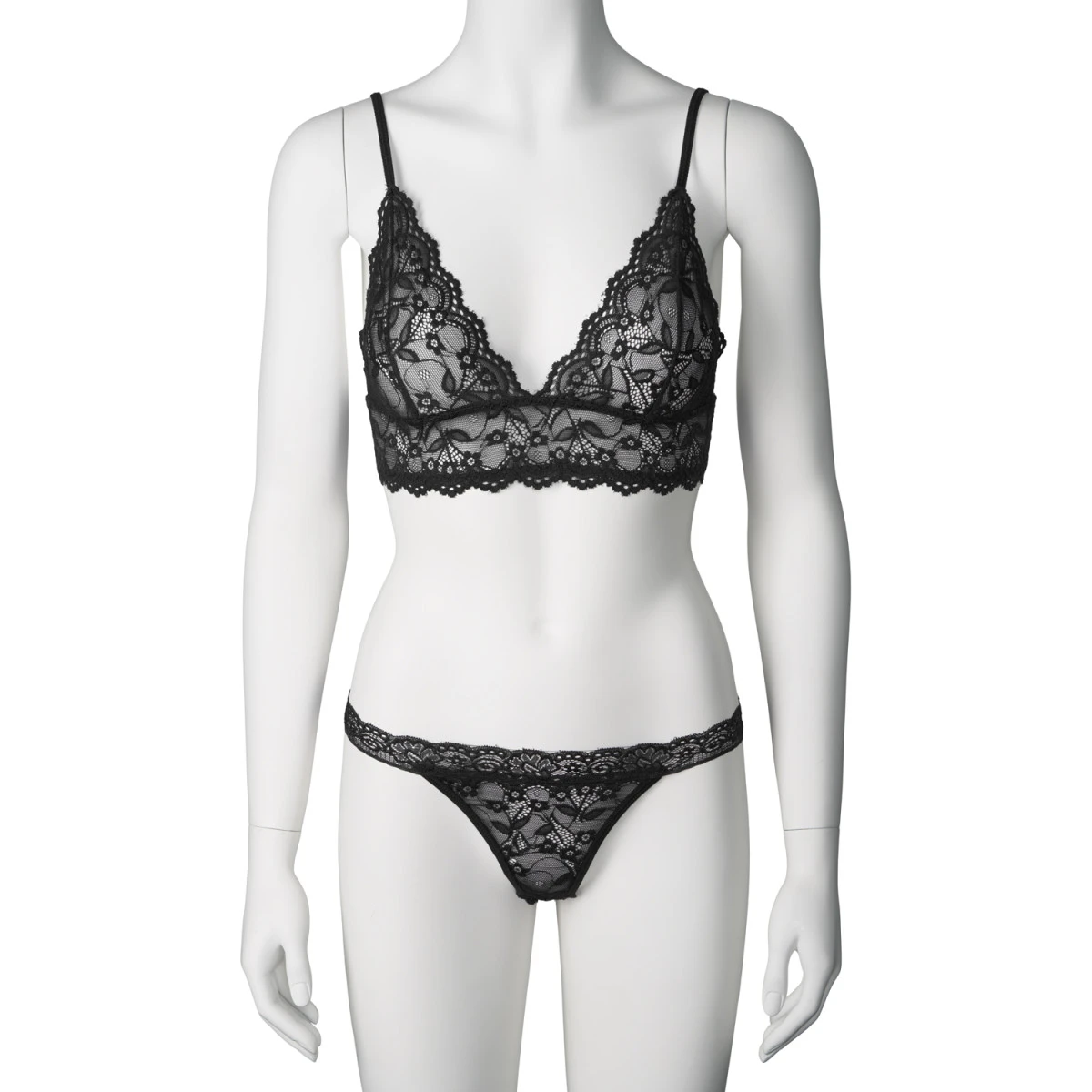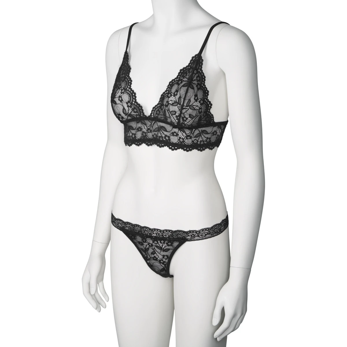 Het doorzichtige zwarte kant bedekt je intieme delen op een ondeugende manier en de driehoekige cups zal de aandacht naar je omlijste decolleté leiden. Twee dunne en verstelbare bandjes bevestigen de bh op je rug zonder sluiting, zodat dwalende handen heerlijk in de war raken.